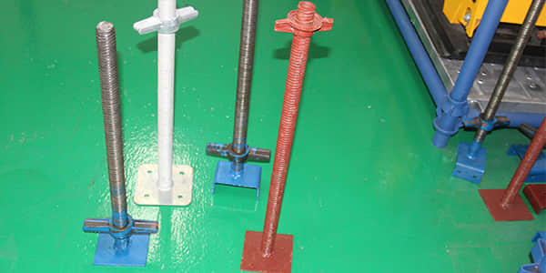 - Realizar ajustes: La varilla roscada y la tuerca de gato ajustable permiten realizar ajustes precisos en altura para mitigar las diferencias en el nivel del suelo, asegurando que los miembros verticales (postes) del sistema de andamios comiencen perfectamente a plomo y nivelados.
