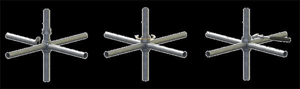El sistema Cuplock se caracteriza por su mínimo número de componentes primarios. Su eficiencia depende de una puesta en escena organizada.