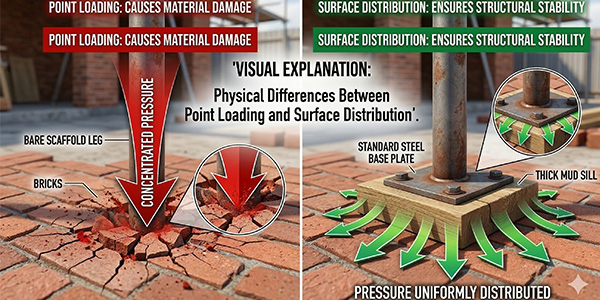 • Brittleness and Cracking: Bricks and concrete blocks are designed to bear weight when they are part of a completed wall system where loads are distributed evenly. When used as a standalone support for a scaffold leg, they are subject to "point loading." This concentrated pressure can cause the brick to crack or shatter instantly without warning.